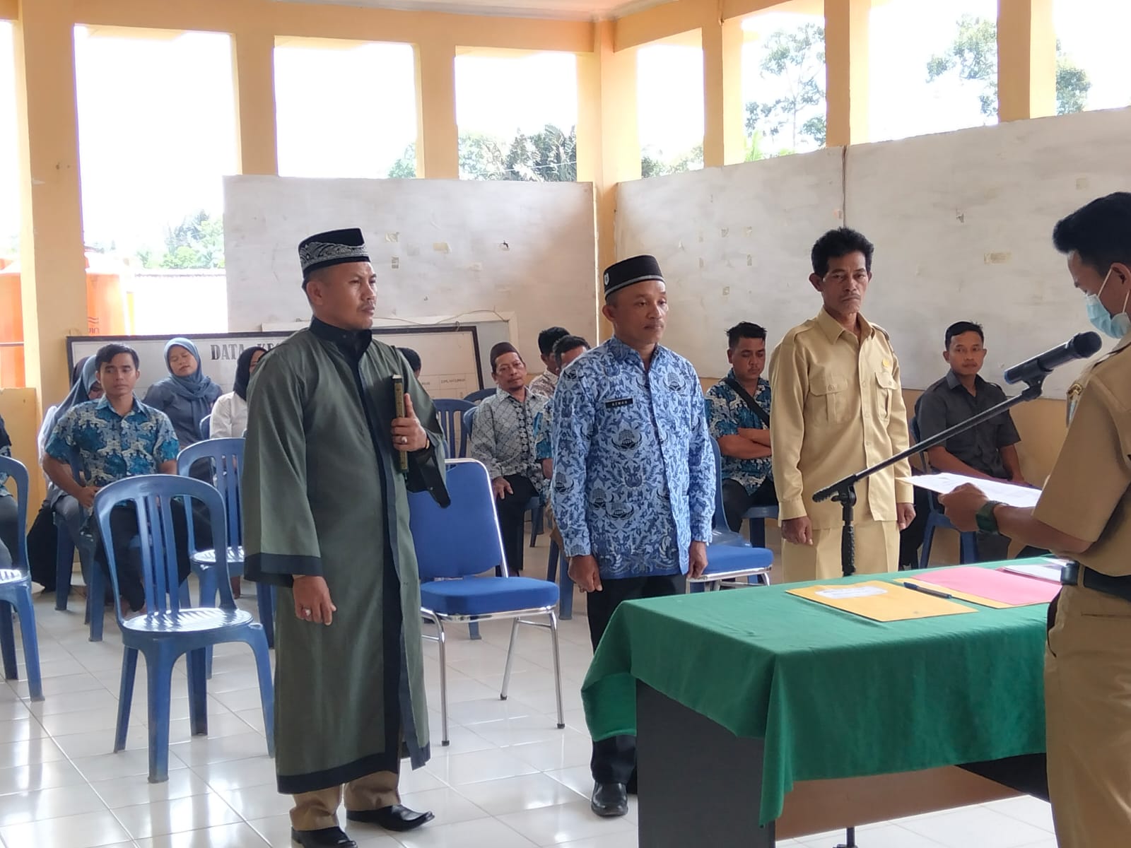 Penyampak, 29-03-2022. Camat Tempilang, Russian, SKM,M.H melakukan pelantikan Penjabat (Pj) Kepala Desa (Kades). Kali ini camat melantik kades Penyampak di halaman Balai Desa Penyampak, Selasa (29/03/2022).