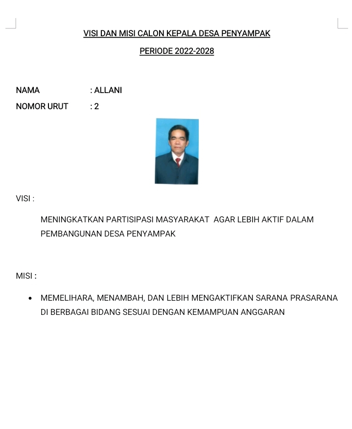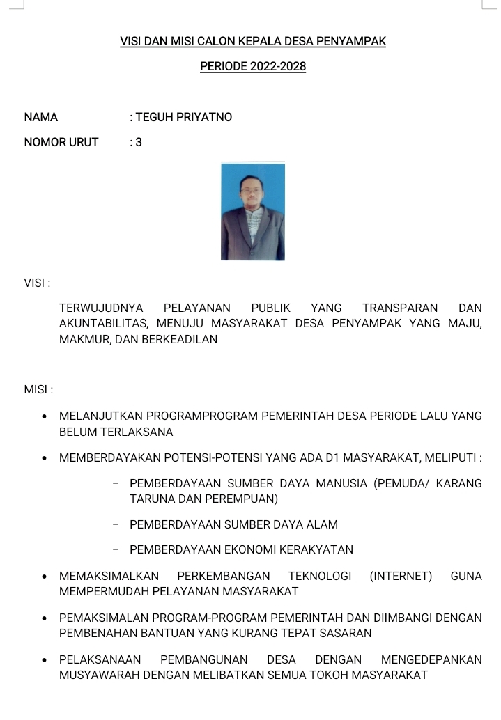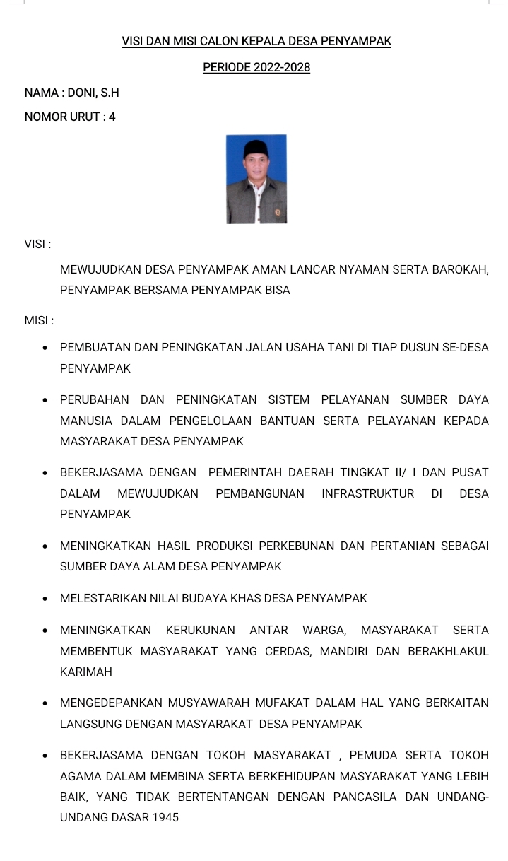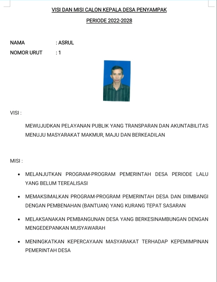 Visi dan Misi Para Calon Kepala Desa Penyampak